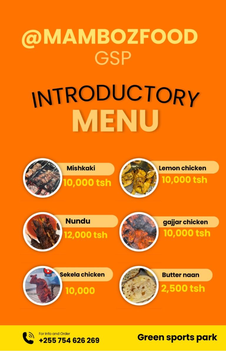 mamboz restaurant mamboz GSP Mamboz Menu Your Next Favorite Bite Lives Here Whether you’re craving a juicy grill, a spicy curry, or a slice of cheesy pizza heaven — Mamboz has you covered. mamboz GSP main dish Bold Bites. Big Flavor Green Sports Park, Oysterbay +255 689 626269 OPEN HOURSOpen 5Pm to midnight eveyday except Tuesdays. Open on all holidays. Get Directions